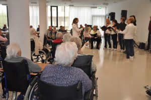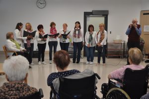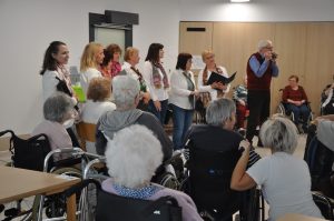 V tednu pred Velikonočnimi prazniki nas je obiskal tudi Ženski pevski zbor Miren-Orehovlje. Prinesle so s sabo zakladnico slovenskih ljudskih pesmi ter naših starih popevk. Veselje je zapeti in čutiti kako nas pesem povezuje, ne glede koliko smo stari in od kje prihajamo.