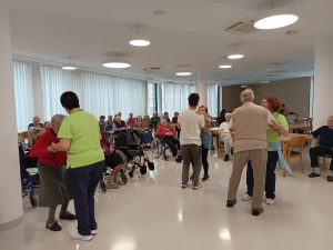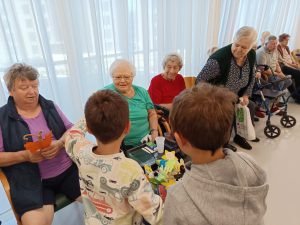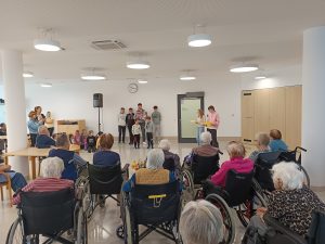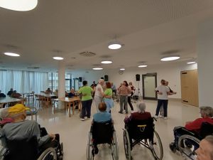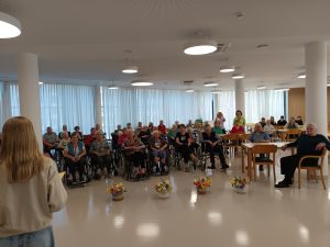 Ker pa radi ostajamo aktivni in z veseljem zapojemo – pod taktirko naše Milene to počnemo z veliko veselja in tudi precej dobro  – smo izkoristili priložnost še za sodelovanje v vseslovenskem projektu in posneli nabor pesmi za aplikacijo, ki povezuje ljudi.