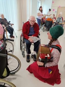 Nismo pozabili tudi na naše stanovalce, ki jih je ujel prehlad in so počivali v sobah… njihove trenutke je polepšala naša Tonka Harmonka s prijazno besedo, pogovorom in petjem.